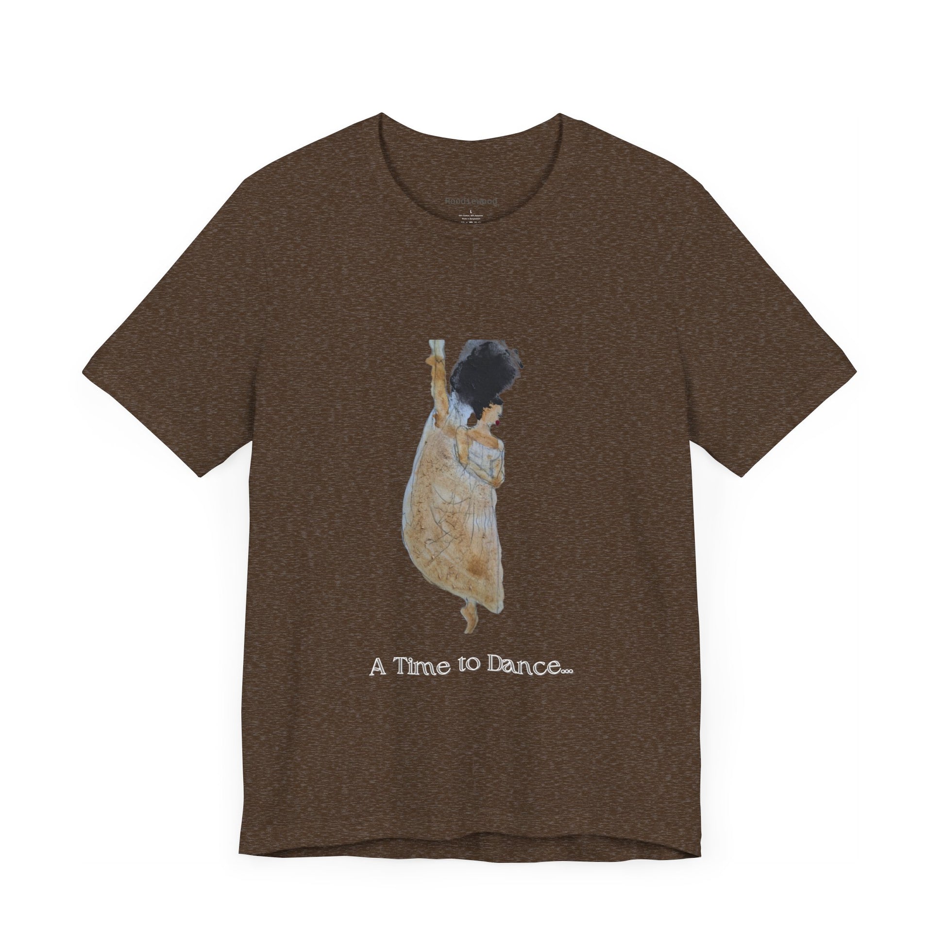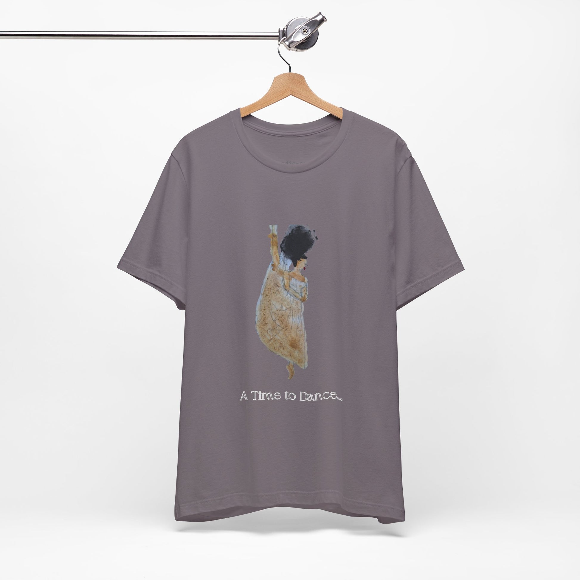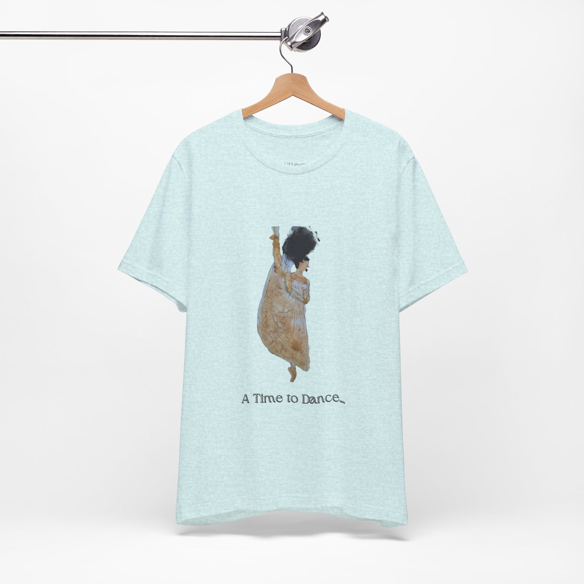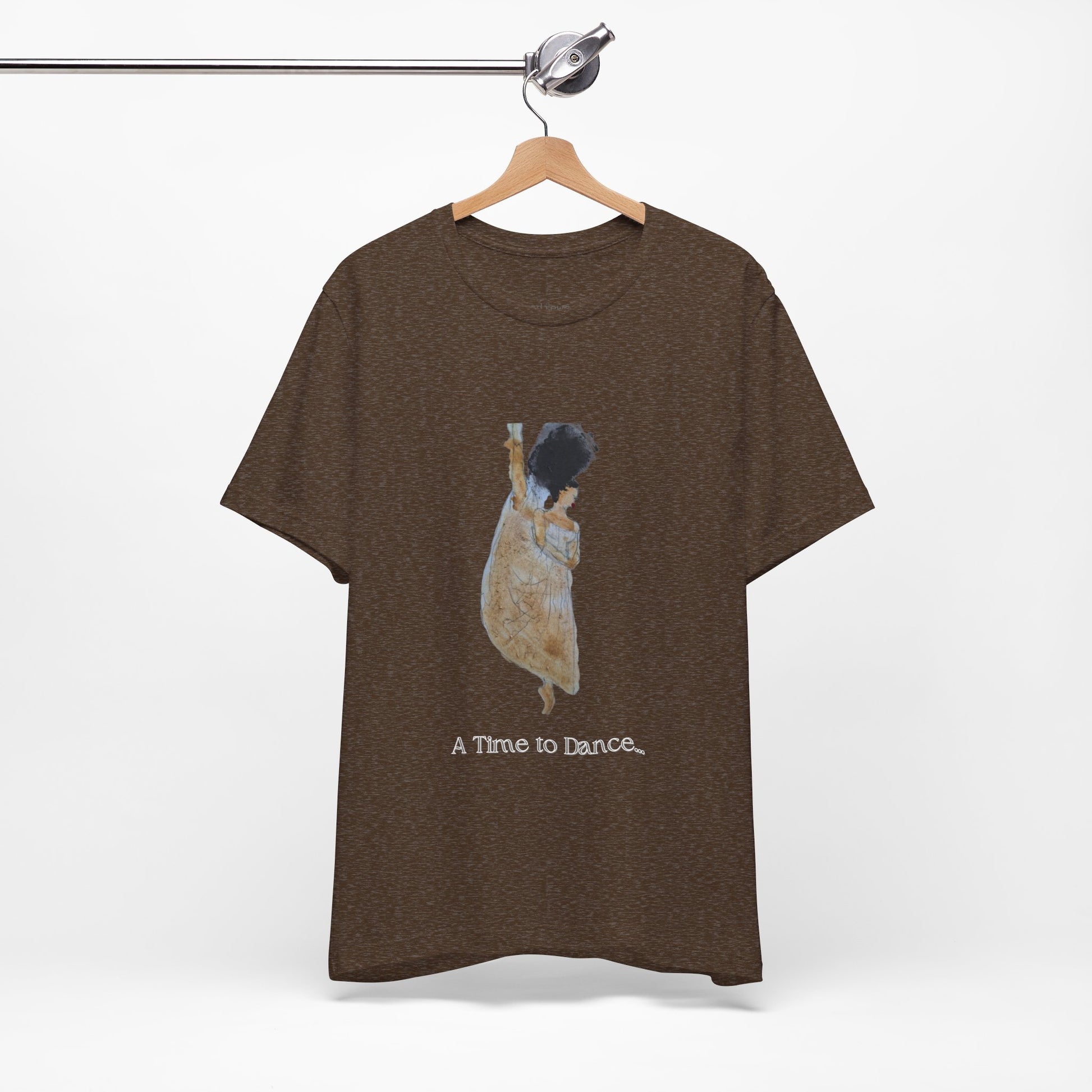 A TIME TO DANCE classic handpainted unisex jersey short sleeve graphic t-shirt fits like a well-loved favorite. Soft cotton and quality print make users fall in love with it over and over again. These hand-painted graphic retro women's t-shirts have ribbed knit collars to bolster shaping. The shoulders are tapered for a better fit over time. Dual side seams hold this black art graphic garment's shape for longer.