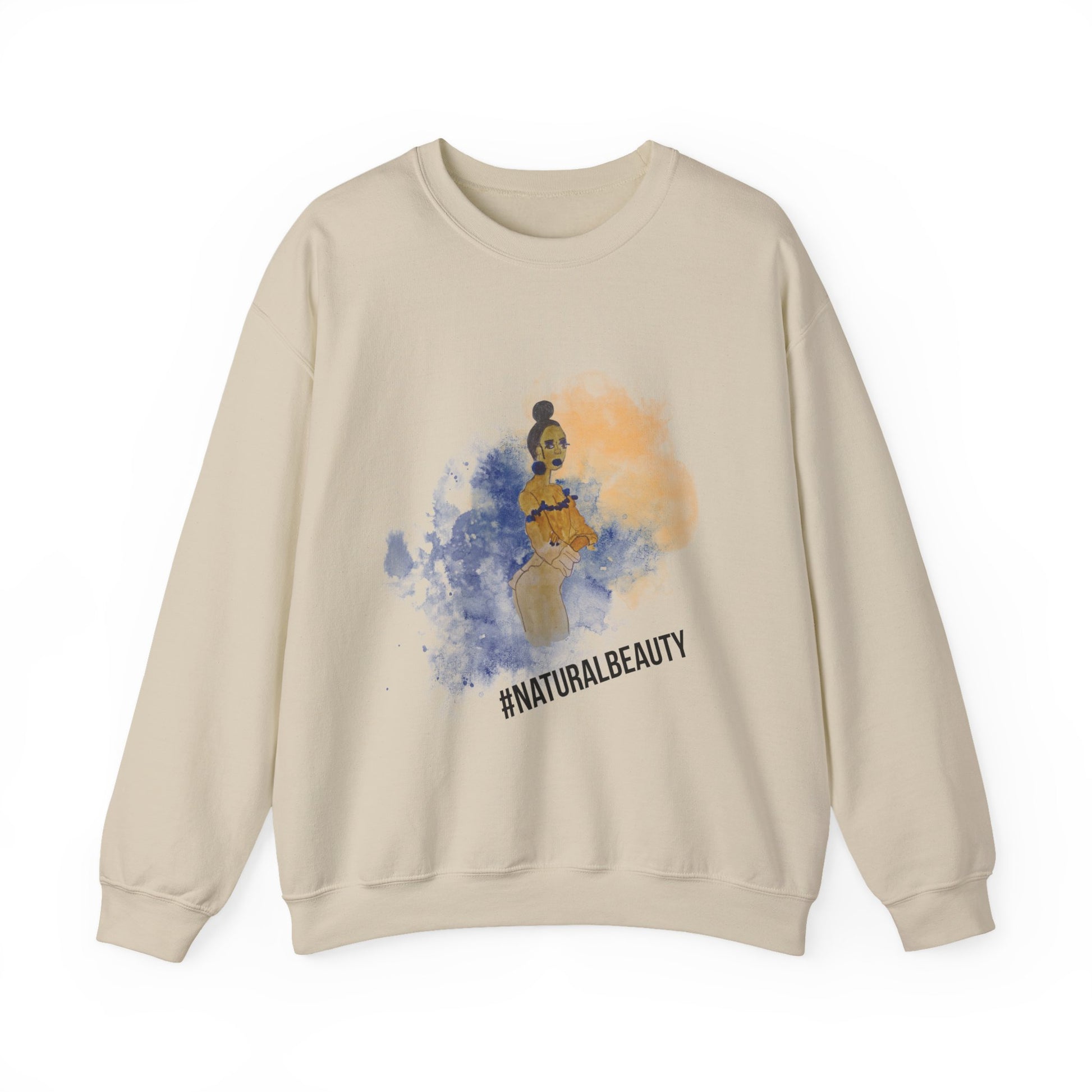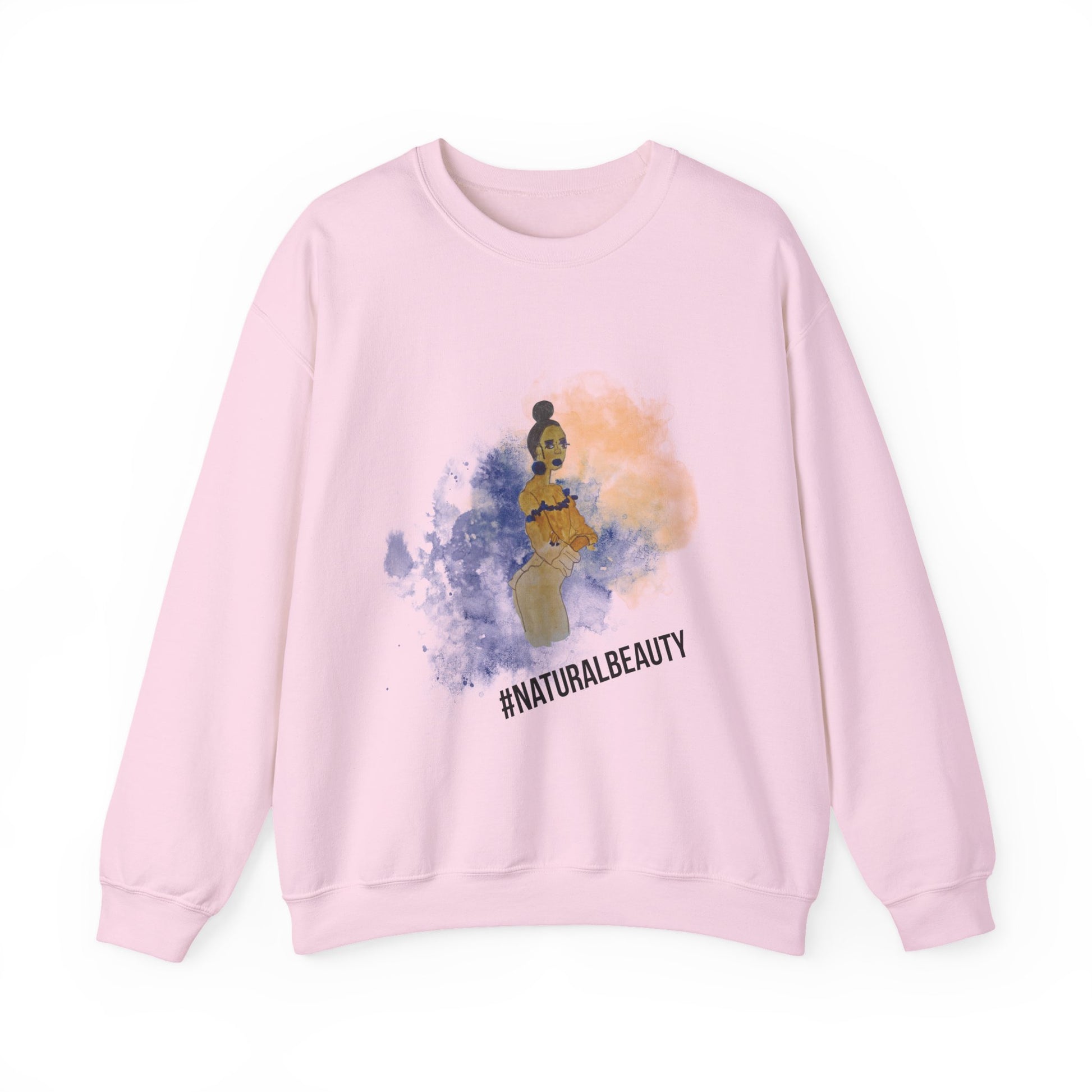 This Natural Beauty Women's crewneck sweatshirt features an African-American woman graphic, offering a stylish and cultural vibe. Perfect for women looking to embrace their heritage and make a bold fashion statement. Ideal for Black History Month, cultural celebrations, and everyday wear.