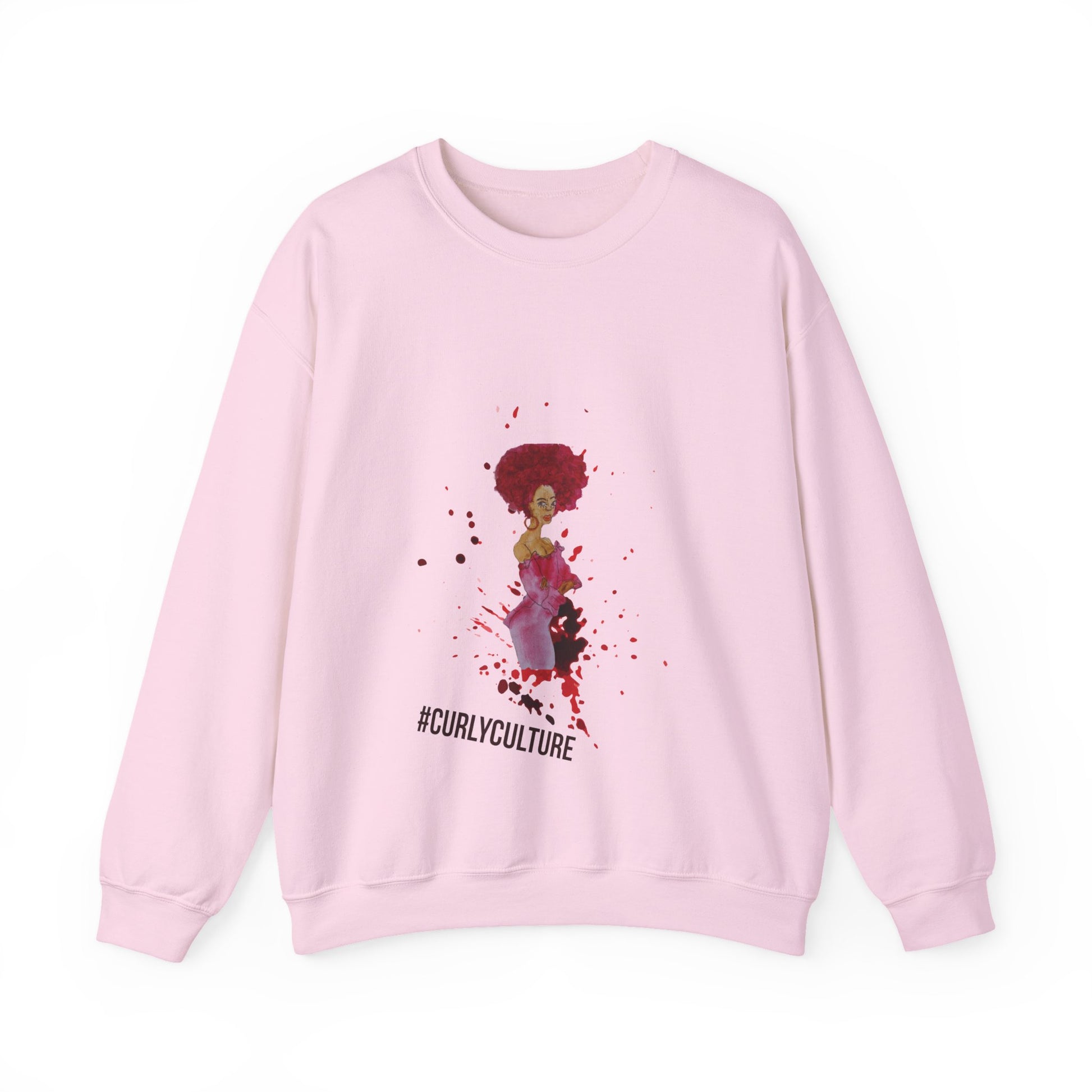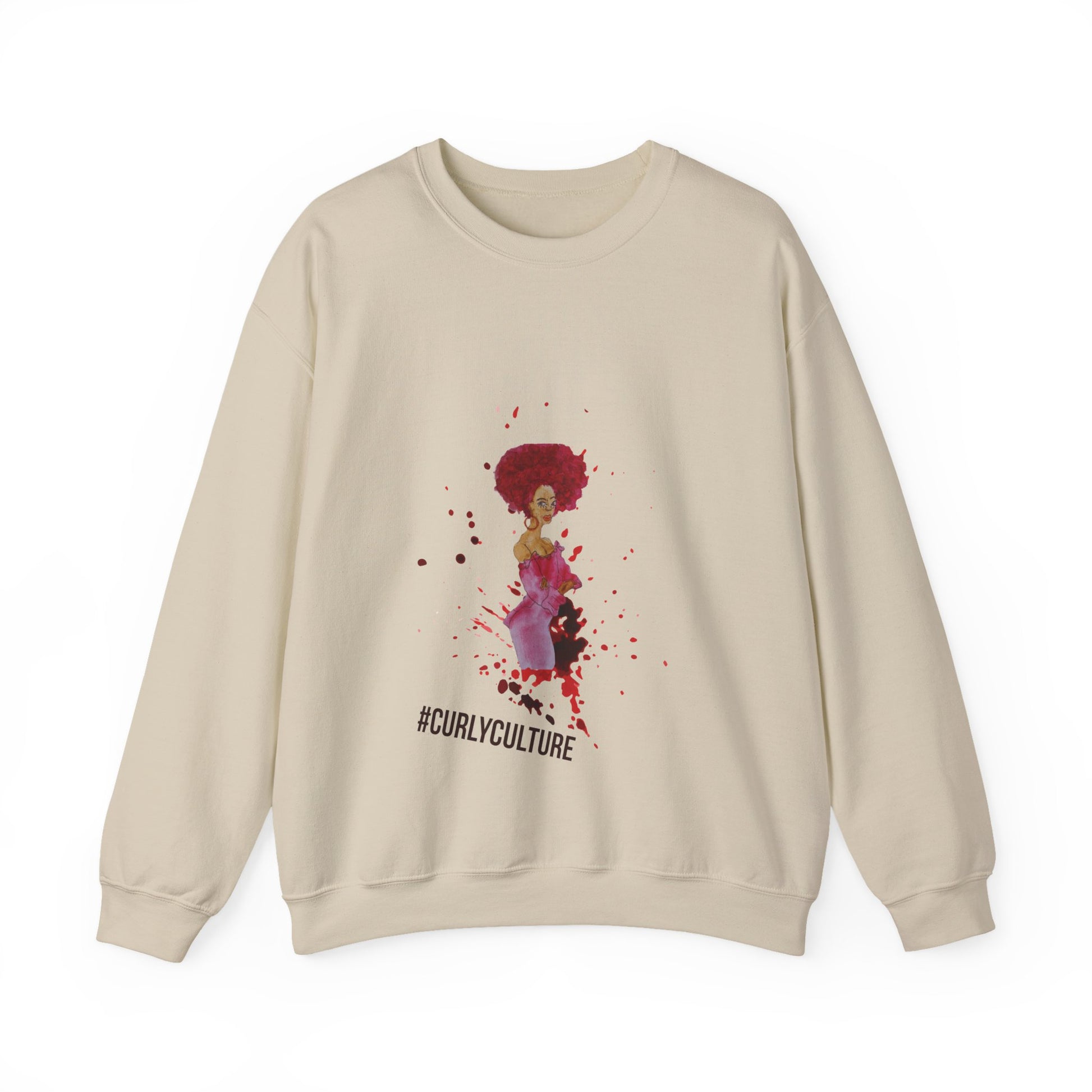 This Curly Culture Women's crewneck sweatshirt features an African-American woman graphic, offering a stylish and cultural vibe. Perfect for women looking to embrace their heritage and make a bold fashion statement. Ideal for Black History Month, cultural celebrations, and everyday wear.