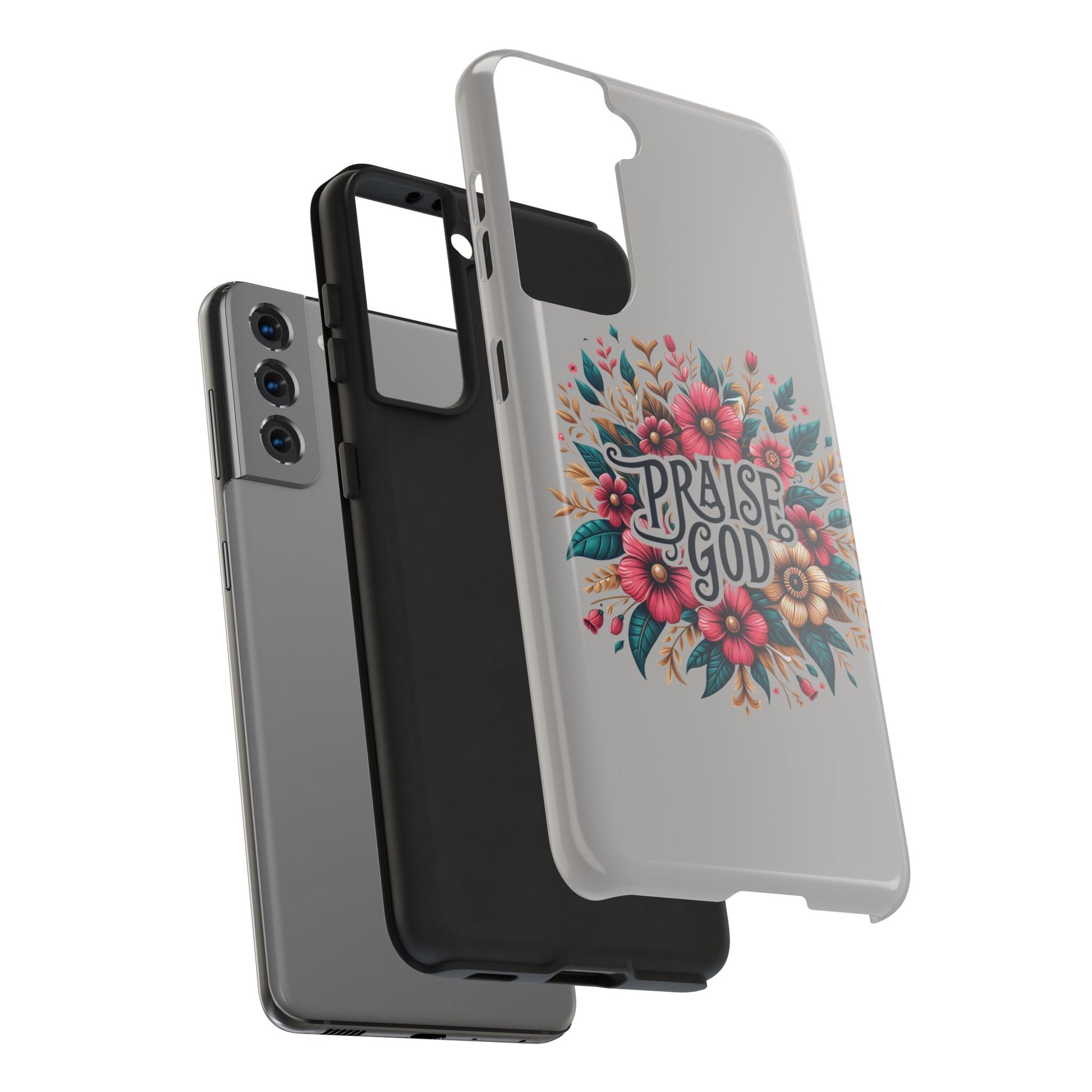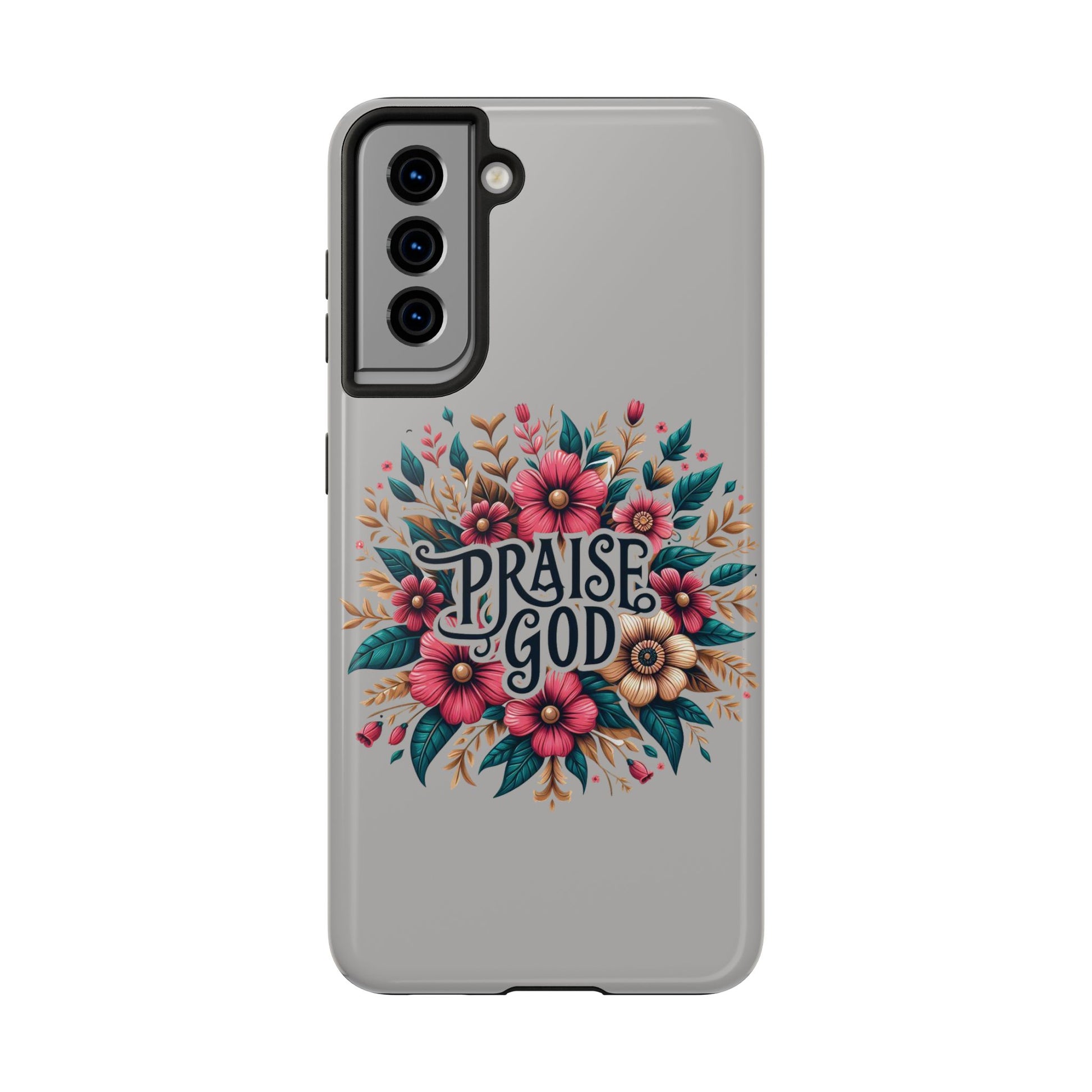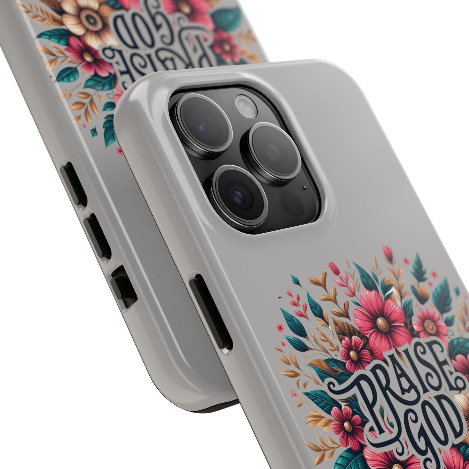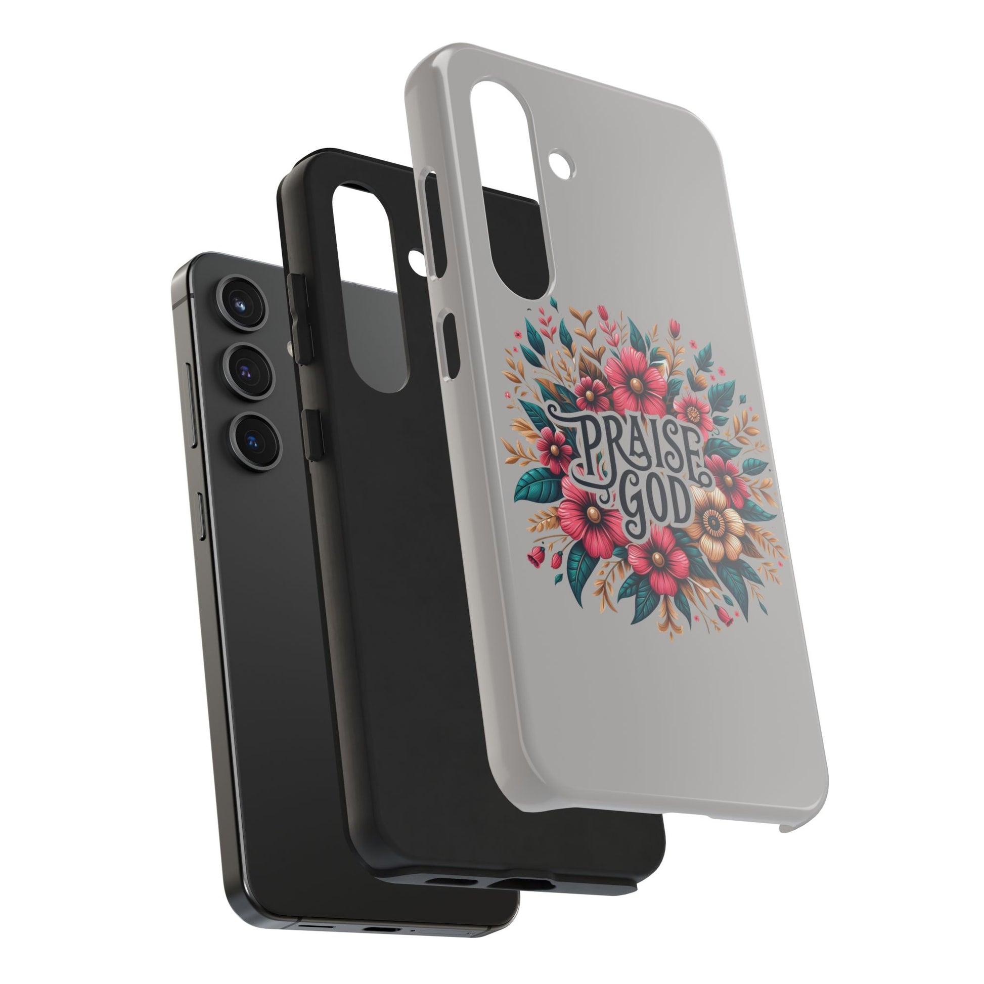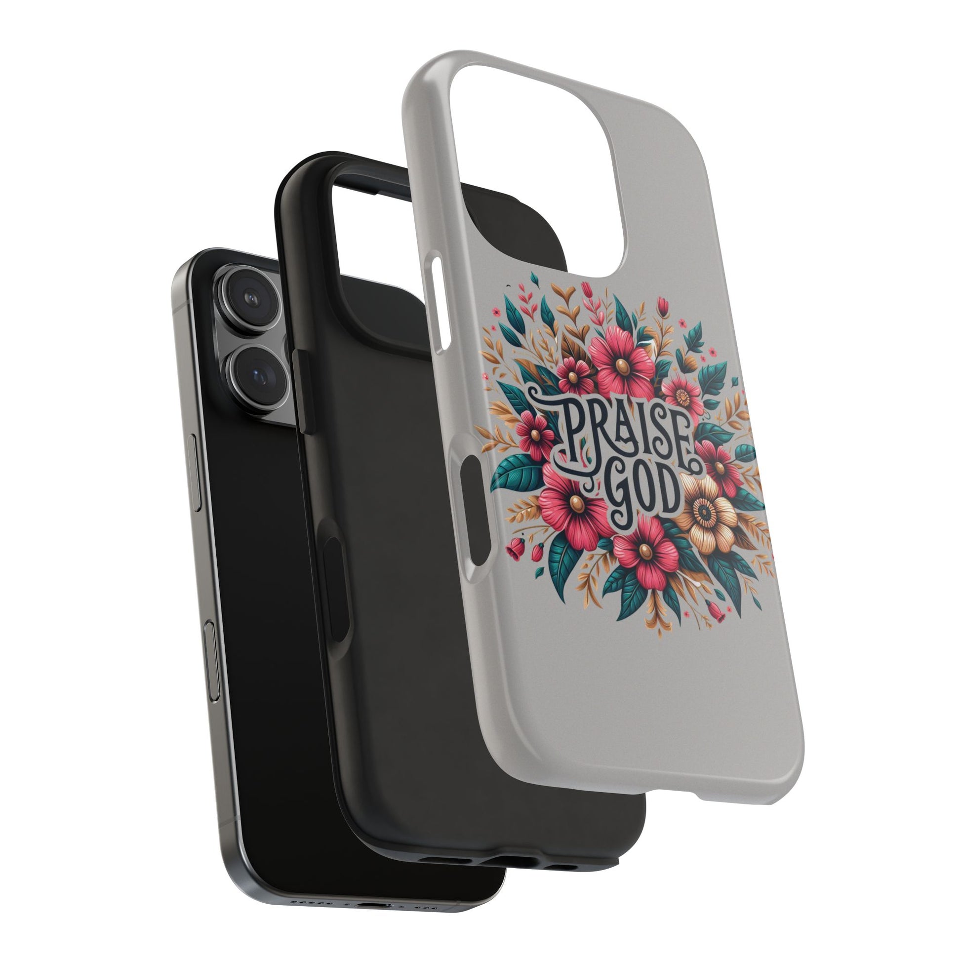 PRAISE GOD, Tough Phone Cases, Floral Inspirational Quote for Faith, iPhone case, Android case, Smartphone case, Gift for Her