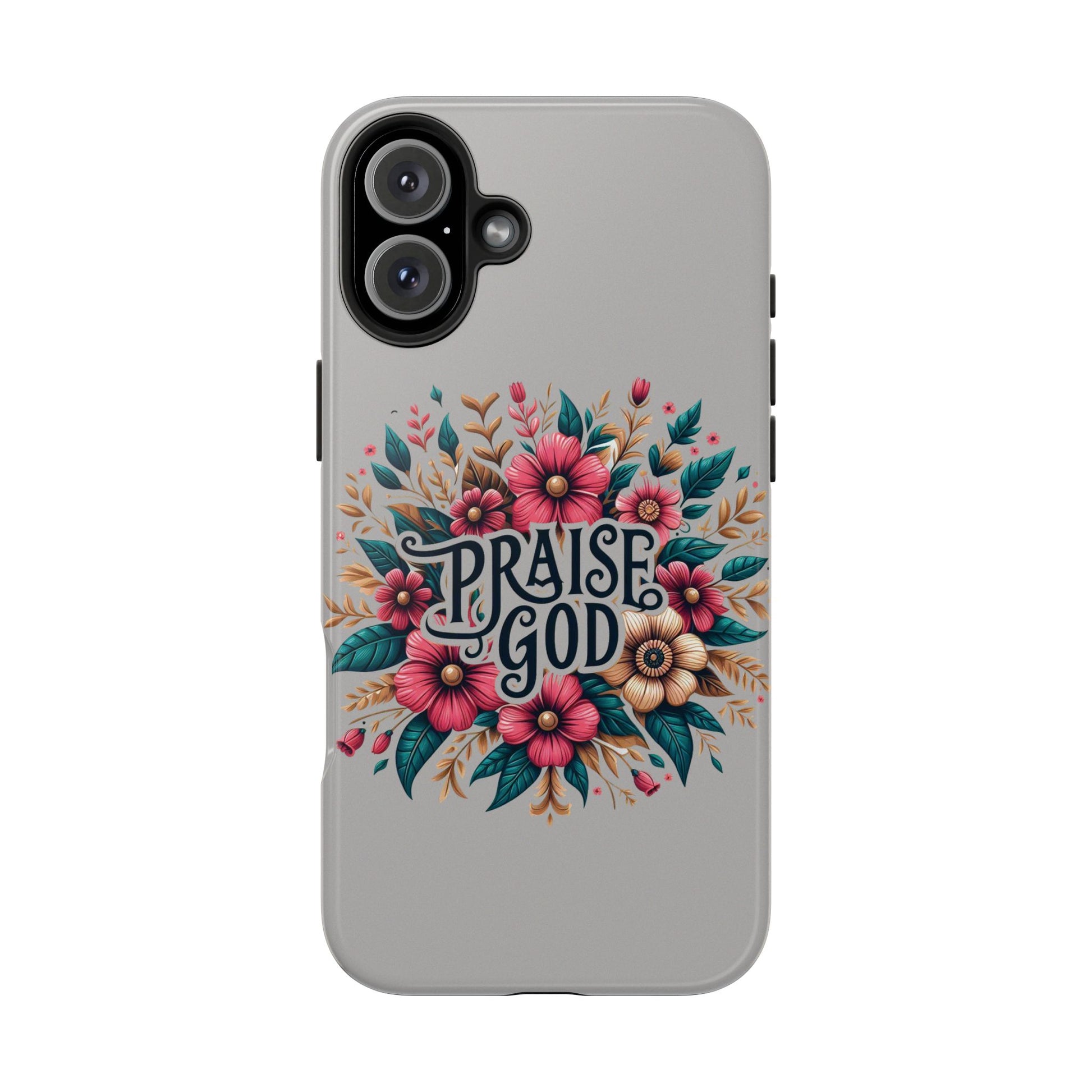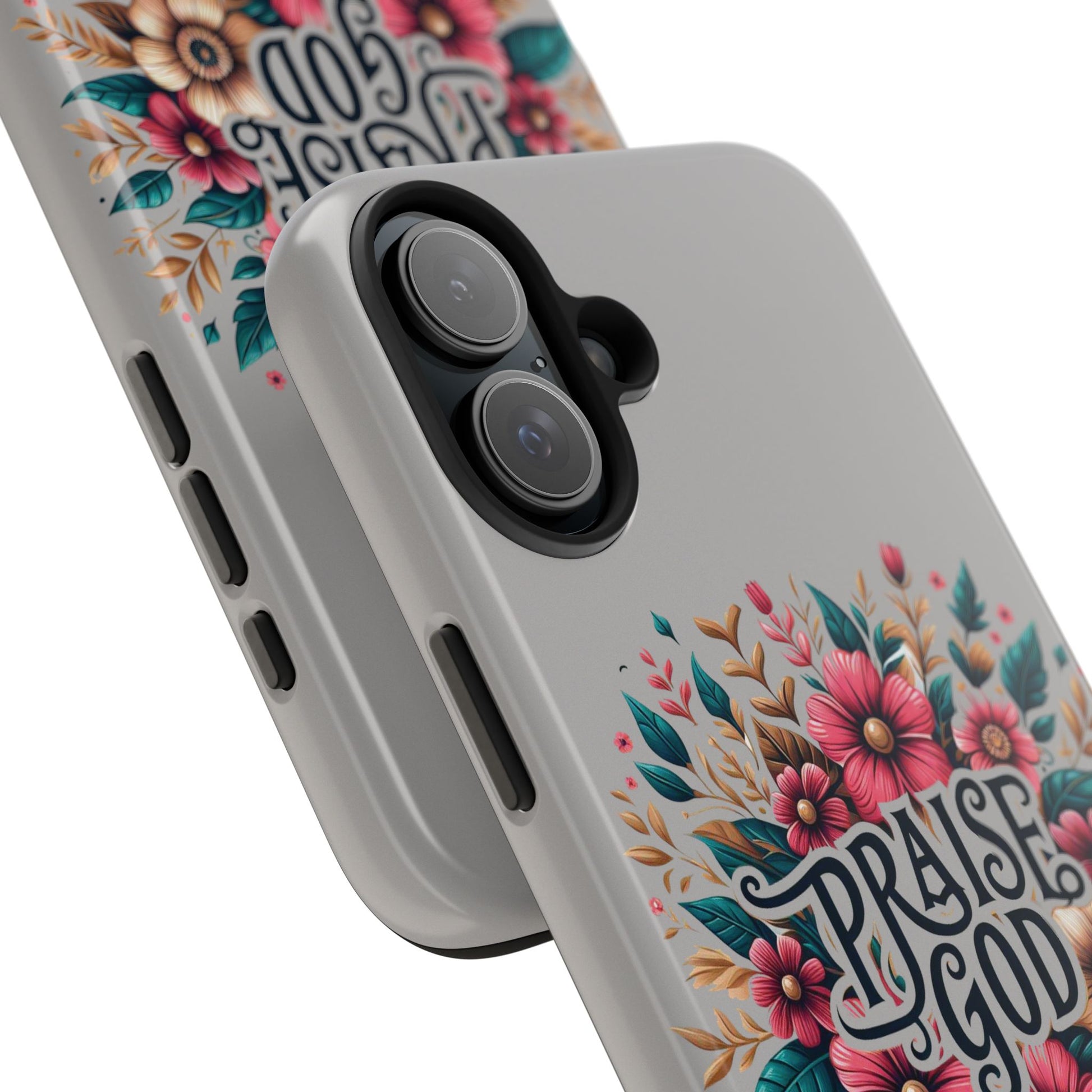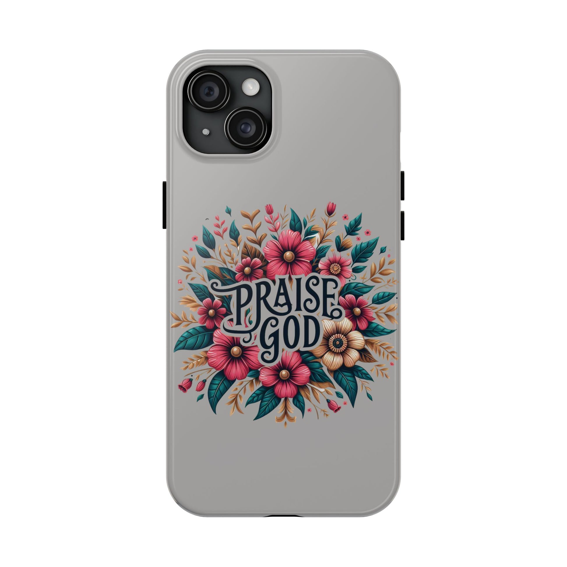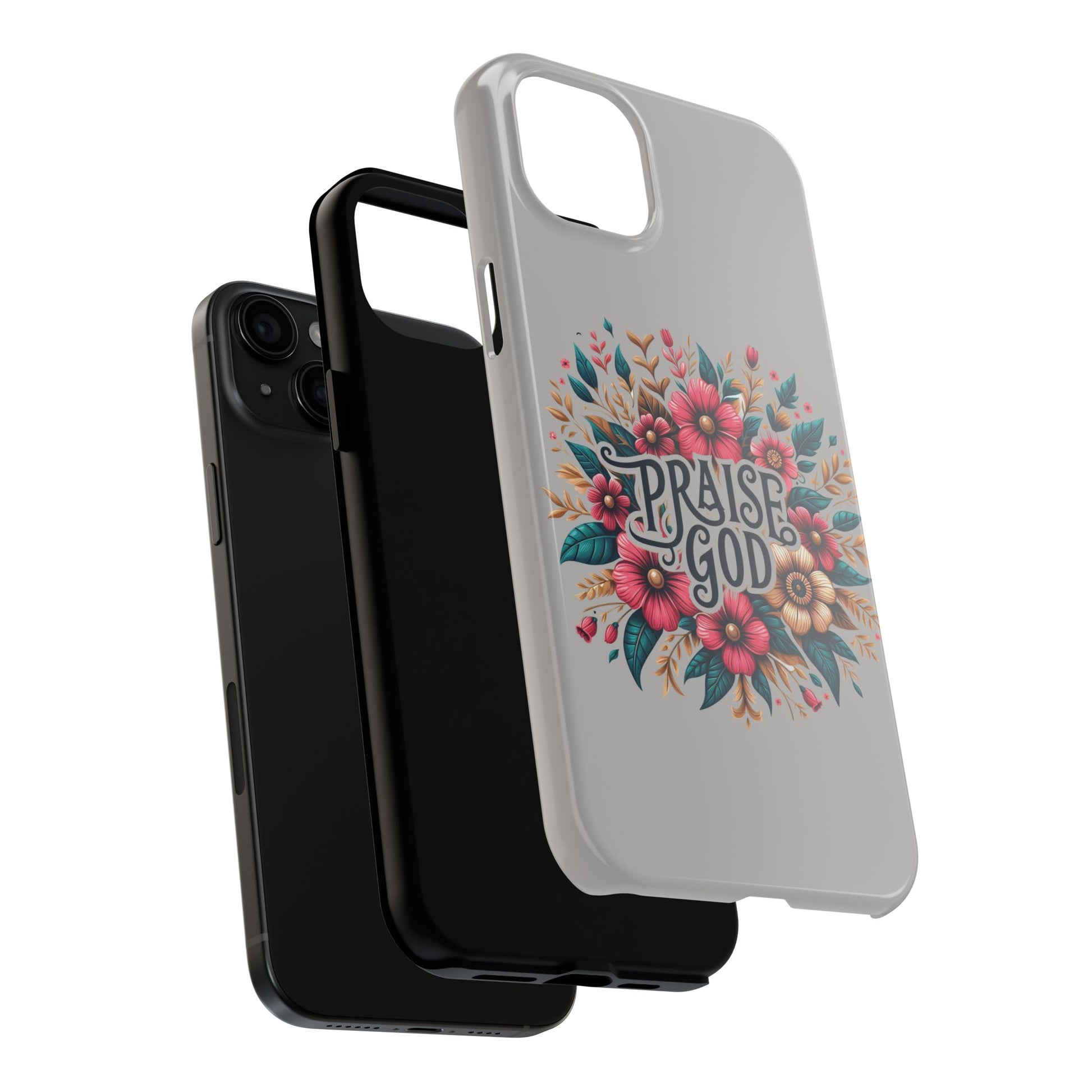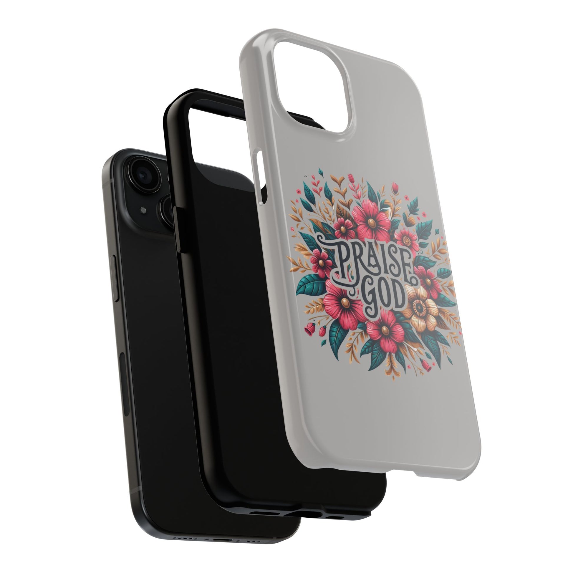 PRAISE GOD, Tough Phone Cases, Floral Inspirational Quote for Faith, iPhone case, Android case, Smartphone case, Gift for Her