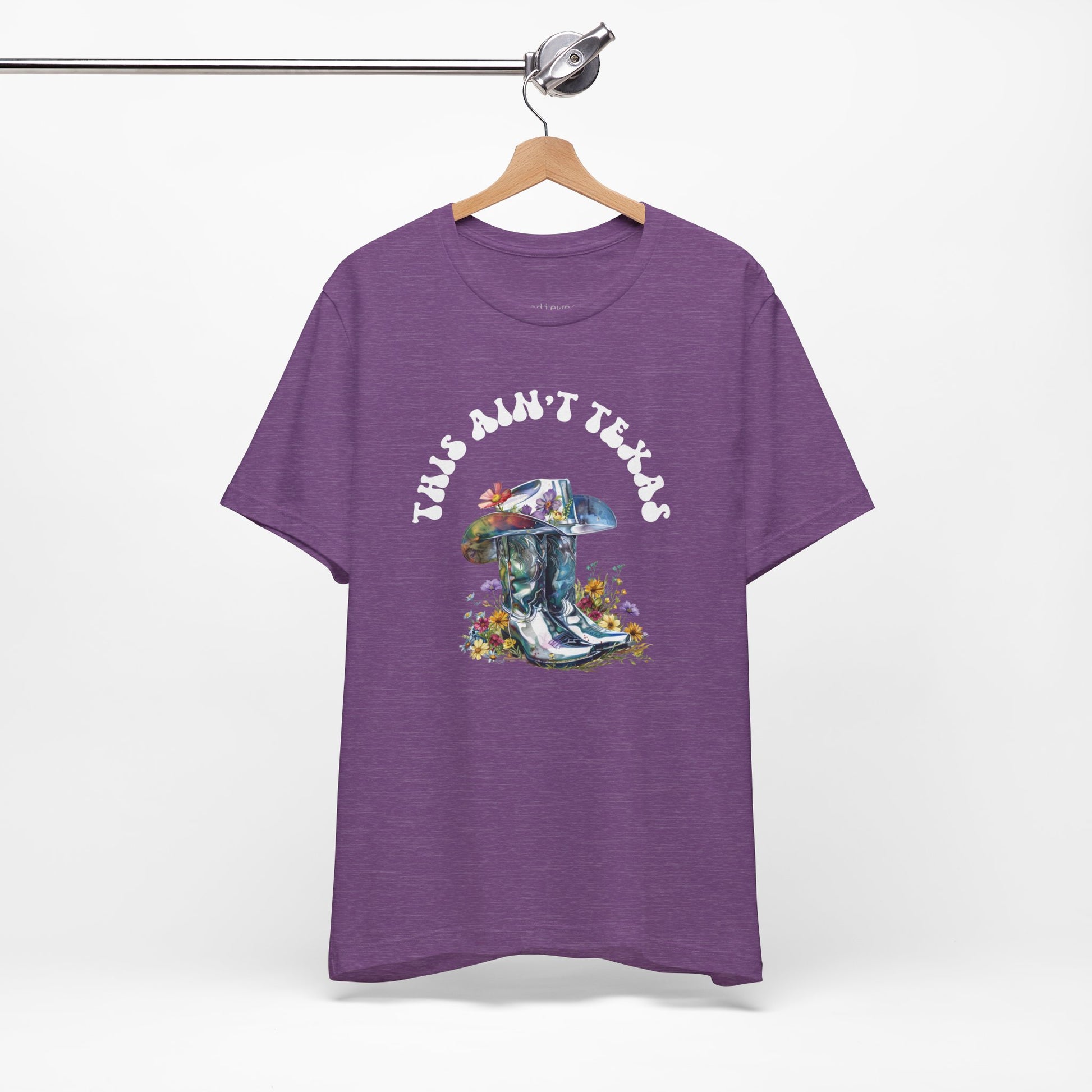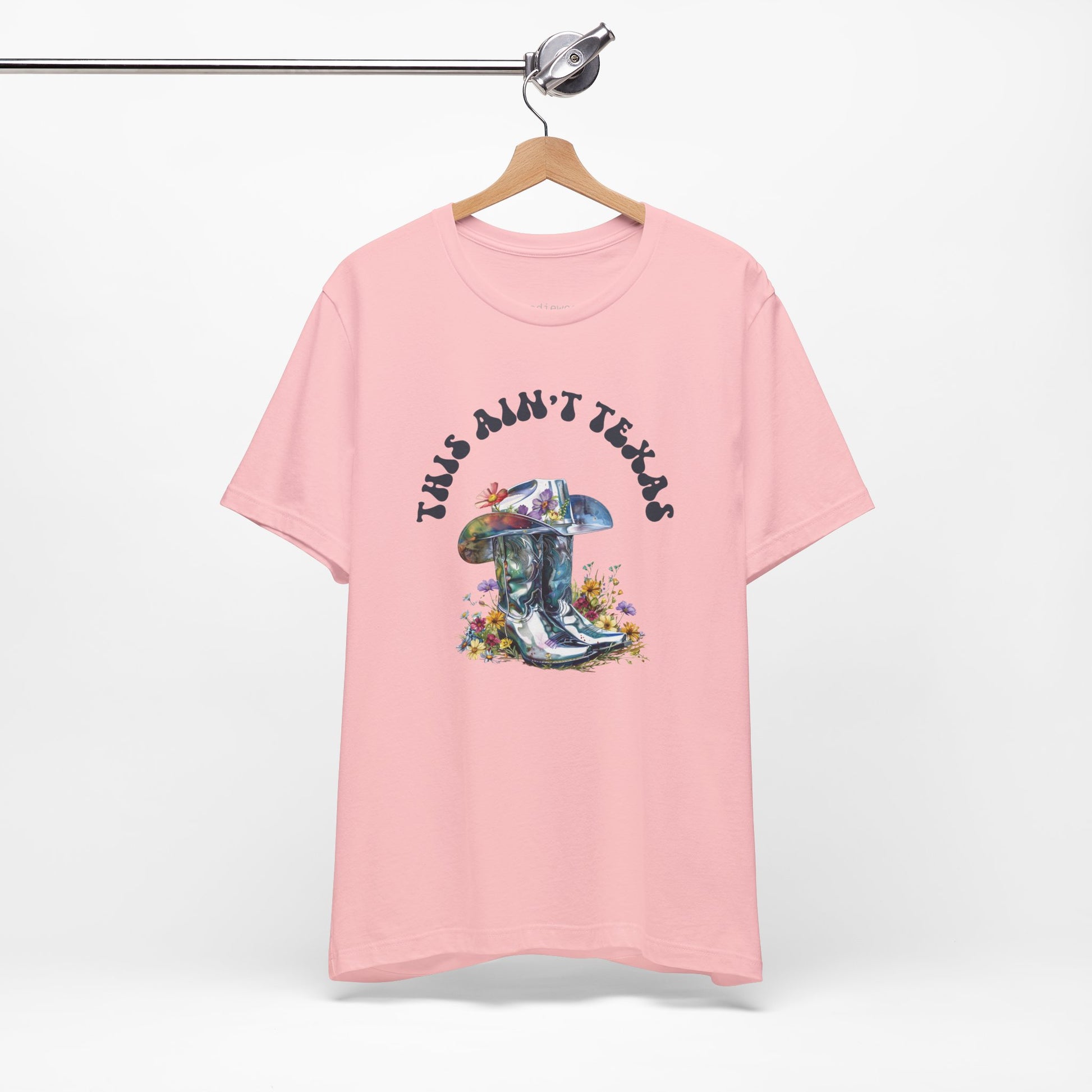 THIS AIN'T TEXAS graphic classic unisex jersey short Cowboy Carter inspired t-shirt fits like a well-loved favorite. Soft cotton and quality print make uban cowgirls fall in love with it over and over again. These cowgirl boots graphic women's t-shirts have-ribbed knit collars to bolster shaping. The shoulders are tapered for a better fit over time. Dual side seams hold this black art graphic garment's shape for longer.
